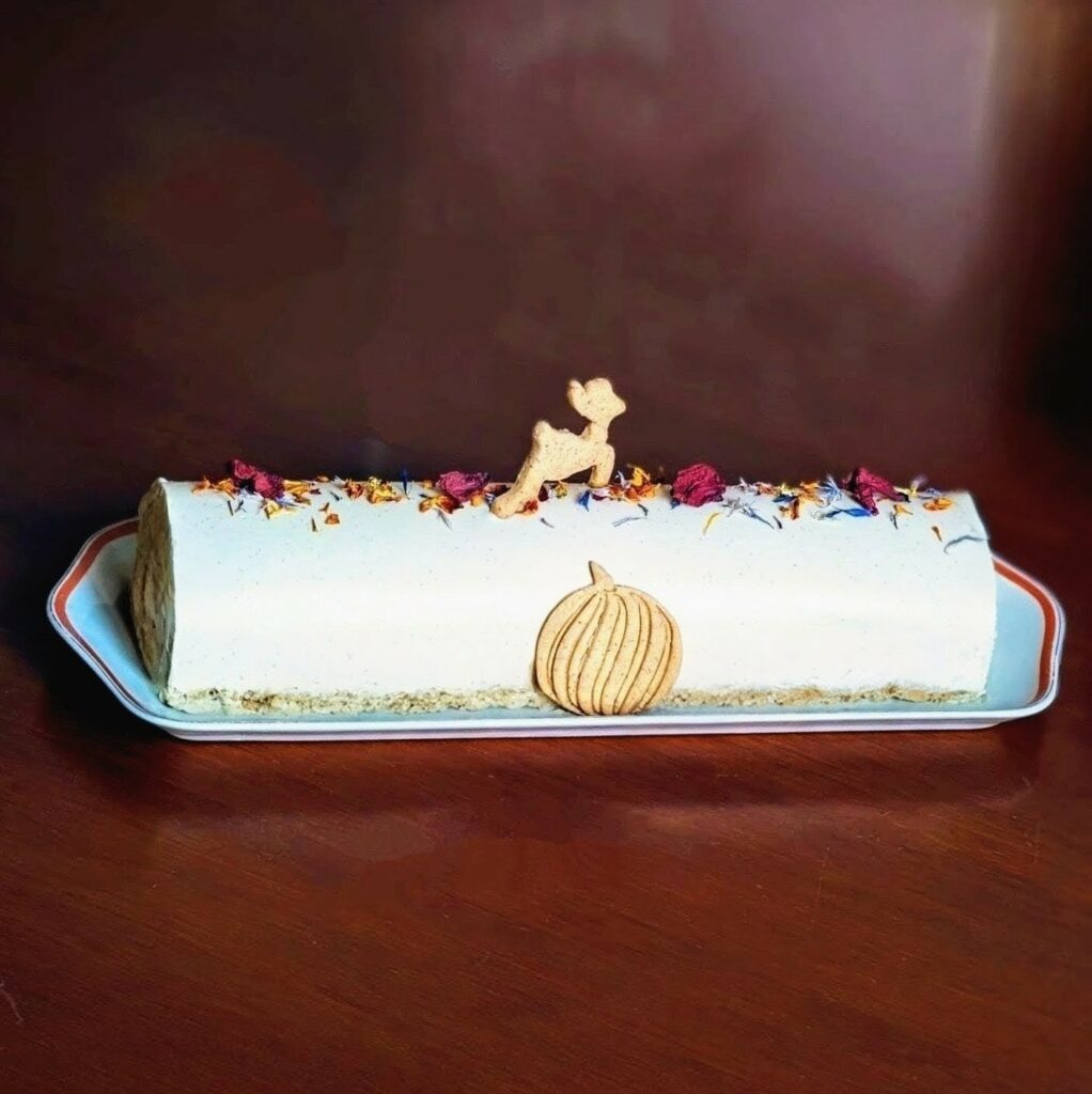 Un gâteau moelleux carrot cake aux noix, un coeur à l'orange confite et une ganache à la vanille